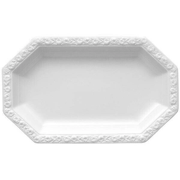 Die Platte Maria von Rosenthal veredelt jeden Tisch. Mit dieser eckigen Platte wird aus jedem Essen ein Festmahl. Sie besteht aus Hartporzellan und ist mit einem eleganten Relief an den Rändern versehen. Dadurch, dass sie eckig ist, bleibt sie in all ihrer Grazilität noch immer sehr modern, ohne reduziert zu sein. Besonders leicht in der Handhabung ist die Platte Maria in Weiß dadurch, dass sie für Mikrowellen geeignet und außerdem spülmaschinenfest ist. Sie misst 28 cm x 17 cm.