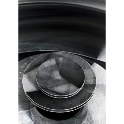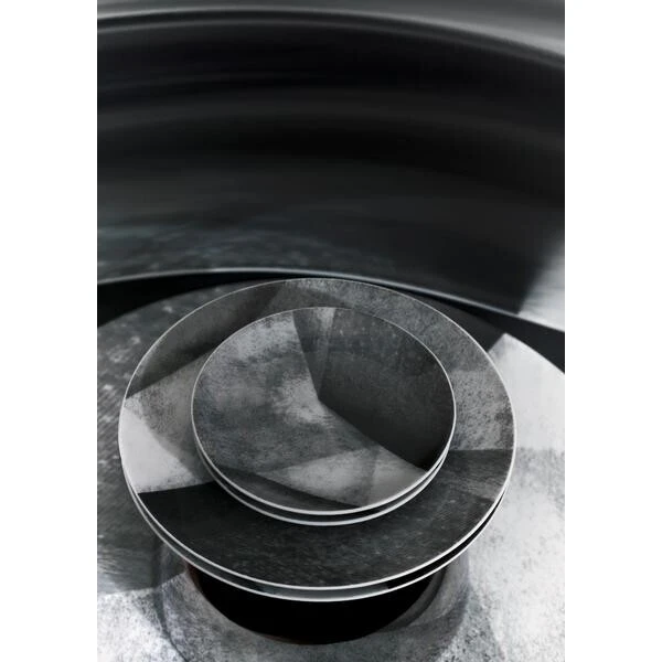 Der flache Teller sticht mit seiner Fassadenstruktur der Oberfläche und den variierenden Farbschattierungen markant hervor. Durch spezielle Schmelz- und Glasurverfahren erhält der Teller einen unverwechselbaren Handmade-Look, der zum verführerischen Genuss einlädt.