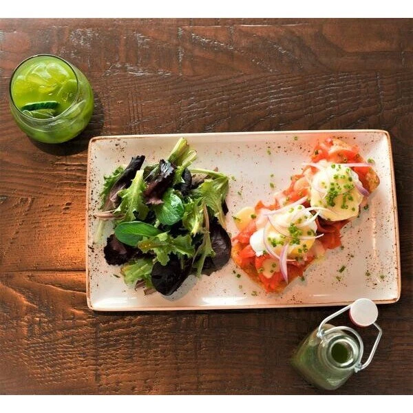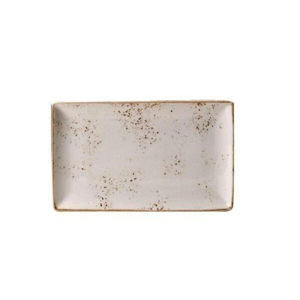Lauter kleine Zufallseffekte, die durch den Brennvorgang auf der Glasur entstehen, machen die Kollektion Craft White, zu der auch die rechteckige Platte gehört, so einzigartig. Kein Teil gleicht dem anderen, lediglich die schlichte Formsprache bleibt sich treu. Die zufälligen “Special Effects” und kleinen Unebenheiten verleihen der Keramik von Steelite ihren rustikalen Touch. Das Design ist inspiriert von einfacher Handwerkskunst. Die glänzende und unwahrscheinlich strapazierfähige Glasur wird von Hand aufgetragen.