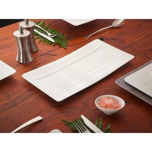 Mit seiner schnörkellosen, geometrischen Form bringt der Servierteller im Format 44×23 cm herzhafte Speisen oder leckere Süßigkeiten auf den Tisch. Die klare Linie des weißen Porzellans von Villeroy & Boch passt hervorragend zu einem schlichten Service.